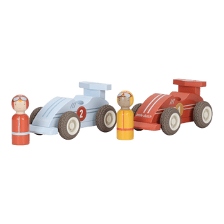 Bereit für den Start? LOS! Dieses Set aus zwei Holz-Rennautos verfügt über eine coole Rückziehfunktion. Zieh sie zurück, lass sie los und sie rasen blitzschnell davon. Enthält zwei mutige Rennfahrer, die bereit sind, gegeneinander anzutreten. Fahre über den Boden, baue eine Rennstrecke und sieh, wer zuerst die Ziellinie überquert. Dieses Rennauto-Spielzeug ist ideal für kleine Rennfahrer und sorgt für endlosen Spielspaß. Welches Rennauto gewinnt dein Rennen?
