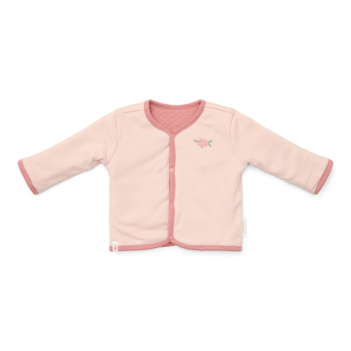 Halte dein Kleines warm und stilvoll mit dieser wendbaren Neugeborenenjacke. Die weiche Jacke hat auf der einen Seite einen wunderschönen Fairy Garden-Druck und auf der anderen Seite eine einfarbige Pink Blush Farbe. Perfekt für jede Gelegenheit! Hergestellt aus weichen, atmungsaktiven Materialien, die sich wunderbar auf der zarten Haut deines Babys anfühlen. Die praktischen Druckknöpfe machen das An- und Ausziehen zum Kinderspiel. Erhältlich in den Größen 44, 50, 56, 62, 68 und 74. Das perfekte Geburtsgeschenk für jeden kleinen Entdecker.