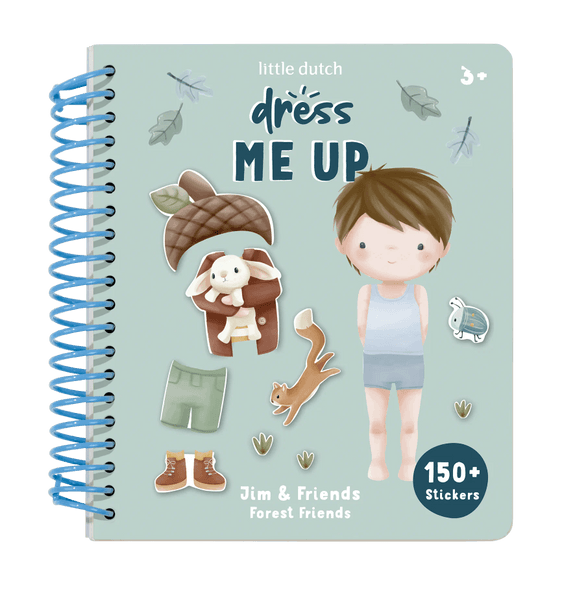 Jim & Friends Forest Friends Dress-up Buch mit Ringbuch. Enthält 24 Seiten mit Modellen und Landschaften und 12 Stickerblätter mit Outfits und Accessoires. Mit festem Einband, ideal für zu Hause und unterwegs.