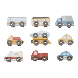 Die Stadt ist immer in Bewegung! Diese hölzernen Geschäfts- und Rettungsfahrzeuge sind einsatzbereit und fahren mühelos über die Schienen, um dort Hilfe zu leisten, wo sie gebraucht wird. Schicke die Feuerwehr los, lasse die Polizei patrouillieren oder den LKW Waren ausliefern. Entwickelt für endlosen Spielspaß mit der Little Dutch Eisenbahn XL und den Erweiterungssets. Kombiniere und erschaffe deine eigene abenteuerliche Stadt!