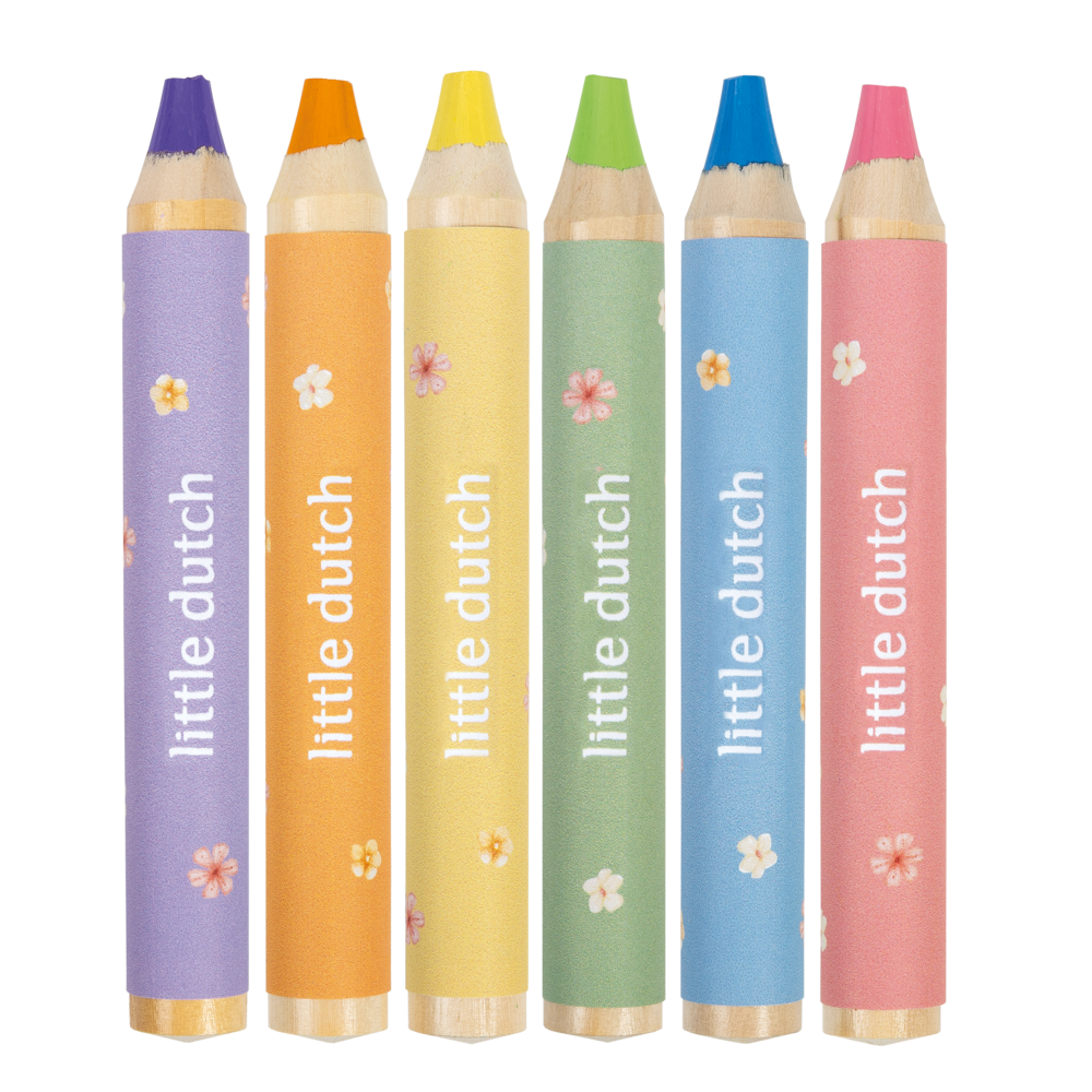 Rosa’s Buntstifte – 6 kurze, dicke Holzstifte in besonderen Little Dutch Farben Mit Rosa’s Buntstiften macht Malen gleich doppelt so viel Spaß! Das Set enthält 6 kurze, dicke Holzstifte in einzigartigen Little Dutch Farbtönen. Die extra-starke Form liegt besonders gut in kleinen Händen und ist ideal für erste Malversuche. Ob Kritzeleien, erste Zeichnungen oder bunte Kunstwerke – die weichen Farben laden zum Entdecken und Ausprobieren ein. Perfekt für kreative Momente zu Hause, im Kindergarten oder unterwegs. Robust, farbenfroh und einfach zu benutzen – perfekt für kreative Momente zu Hause, im Kindergarten oder unterwegs.
