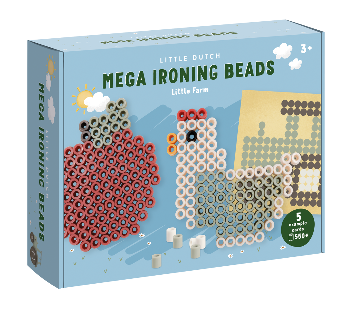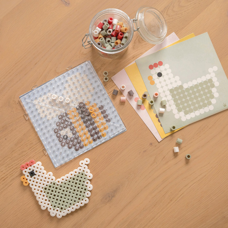Set mit 5 Designs, einem quadratischen Steckbrett und allen benötigten Mega-Maxi-Bügelperlen