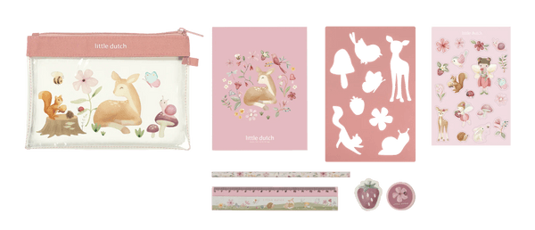 Fairy Garden Schreibset, enthält Notizbuch, Aufkleber, Lineal, Radiergummi, Bleistiftspitzer und Schablonen.