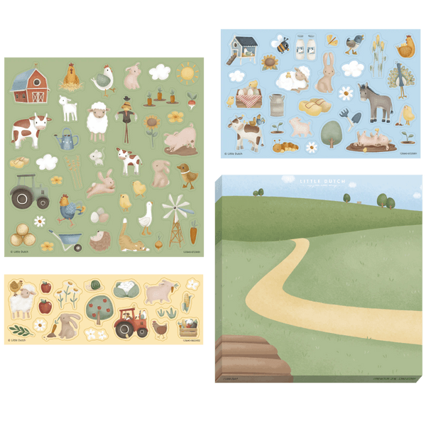 Schöne Little Dutch Stickerset Box mit 3 Blättern mit Stickern der Little Farm Serie. Perfekt für jeden Bastelspass.