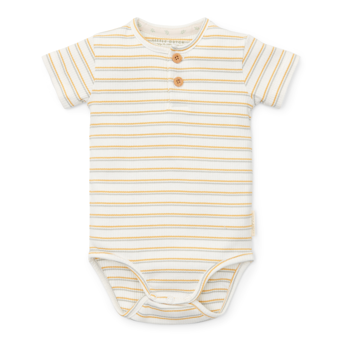 Kuscheliger Komfort für Ihr Kleines! Er ist aus weicher Baumwolle (Bio) mit einer kuscheligen Rippstruktur gefertigt und bietet eine bequeme und dennoch flexible Passform, die perfekt für die täglichen Abenteuer Ihres Babys ist. Die mehrfarbigen Streifen sorgen für einen verspielten Touch und lassen sich leicht mit verschiedenen Outfits kombinieren. Druckknöpfe im Schritt erleichtern den schnellen Windelwechsel, während die Knöpfe in Holzoptik einen rustikalen Charme versprühen. Dieser Body ist ein unverzichtbares Teil und lässt sich ideal mit Hosen und Shirts aus der Little Farm Kollektion kombinieren. Erhältlich in den Größen 44, 50, 56, 62, 68 und 74. Waschanleitung: Maschinenwäsche bei 30°C im Schonwaschgang, bei niedriger Temperatur auf links bügeln, nicht chemisch reinigen, nicht bleichen, nicht im Trockner trocknen