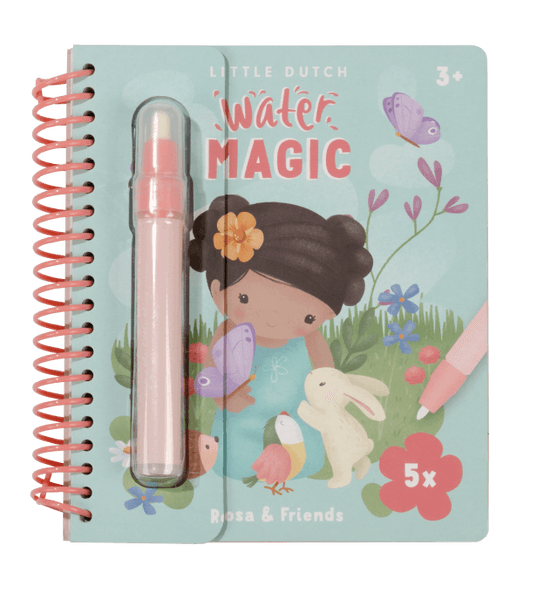 Wow, so wird das Zeichnen zauberhaft! Mit diesem Little Dutch Rosa & Friends Aquarellbuch kannst du die schönsten Kreationen von Rosa, Evi, Julia und anderen im Blumengarten anfertigen. Auf jeder Seite ist ein Stück bereits ausgemalt, so dass du einen Hinweis auf die dort versteckte Zeichnung bekommst. Fülle den mitgelieferten Spezialstift mit Wasser und beginne zu zeichnen. Wenn das Wasser auf dem Karton landet, entstehen die schönsten und fröhlichsten Zeichnungen. Wenn das Papier getrocknet ist, kannst du die Zeichnung noch einmal machen und hast so immer wieder Spaß. Das Buch besteht aus stabilem Karton mit den bekannten Little Dutch-Motiven und -Farben und hat ein praktisches Ringbuch. Die ideale Beschäftigung für zu Hause und unterwegs!