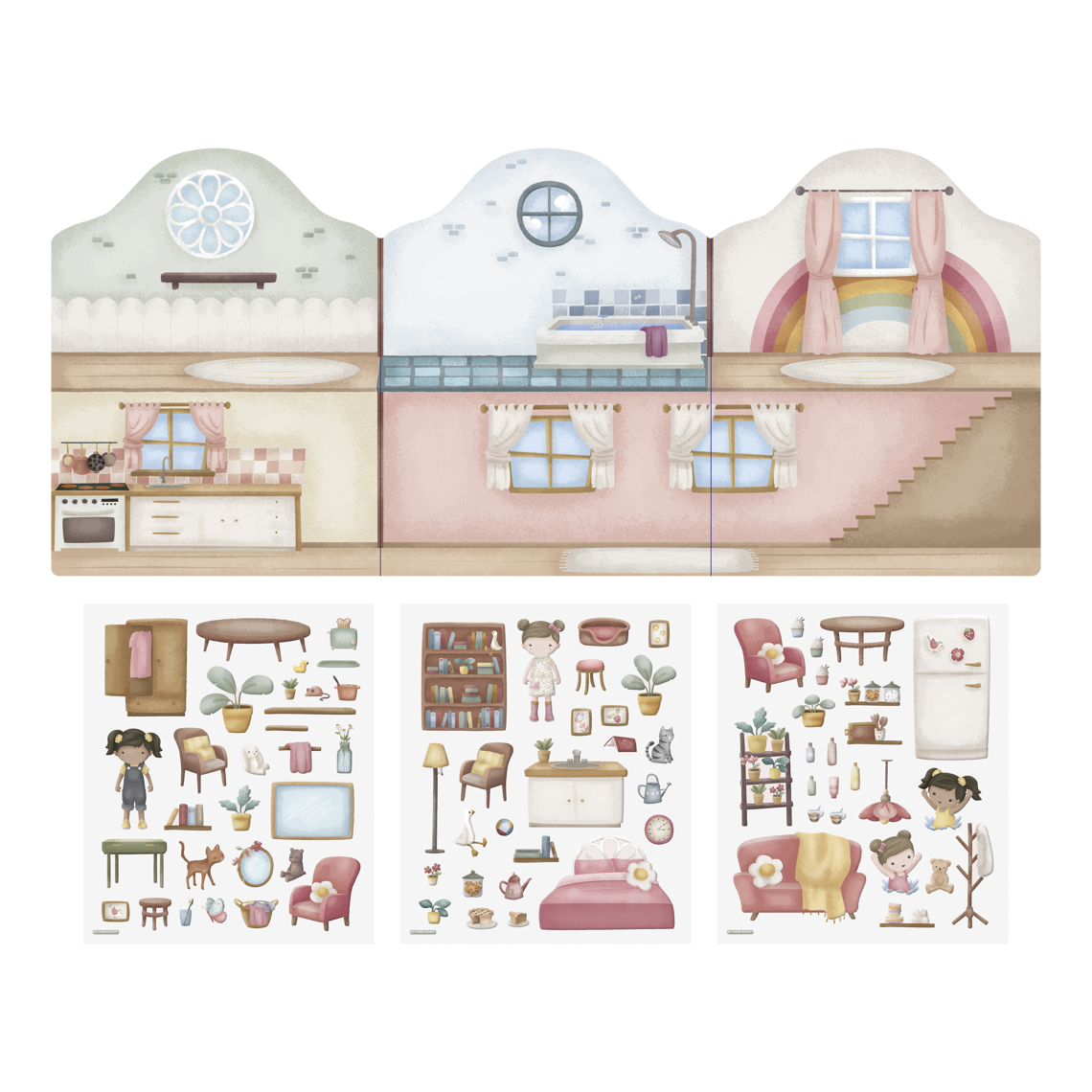 Rosa’s Sticker-Story – mit 3 Bögen wiederverwendbaren Puffy-Stickern Willkommen in Rosa’s Haus! Mit diesem liebevoll gestalteten Sticker-Story-Set können Kinder ihre eigenen Geschichten erfinden und immer wieder neu gestalten. Enthalten sind 3 Bögen mit weichen, wiederverwendbaren Puffy-Stickern, die sich leicht anbringen und ablösen lassen – ganz ohne Klebereste. Ob zu Hause oder unterwegs: Das handliche Stickerheft sorgt für stundenlangen kreativen Spielspaß und regt die Fantasie der Kleinsten an.